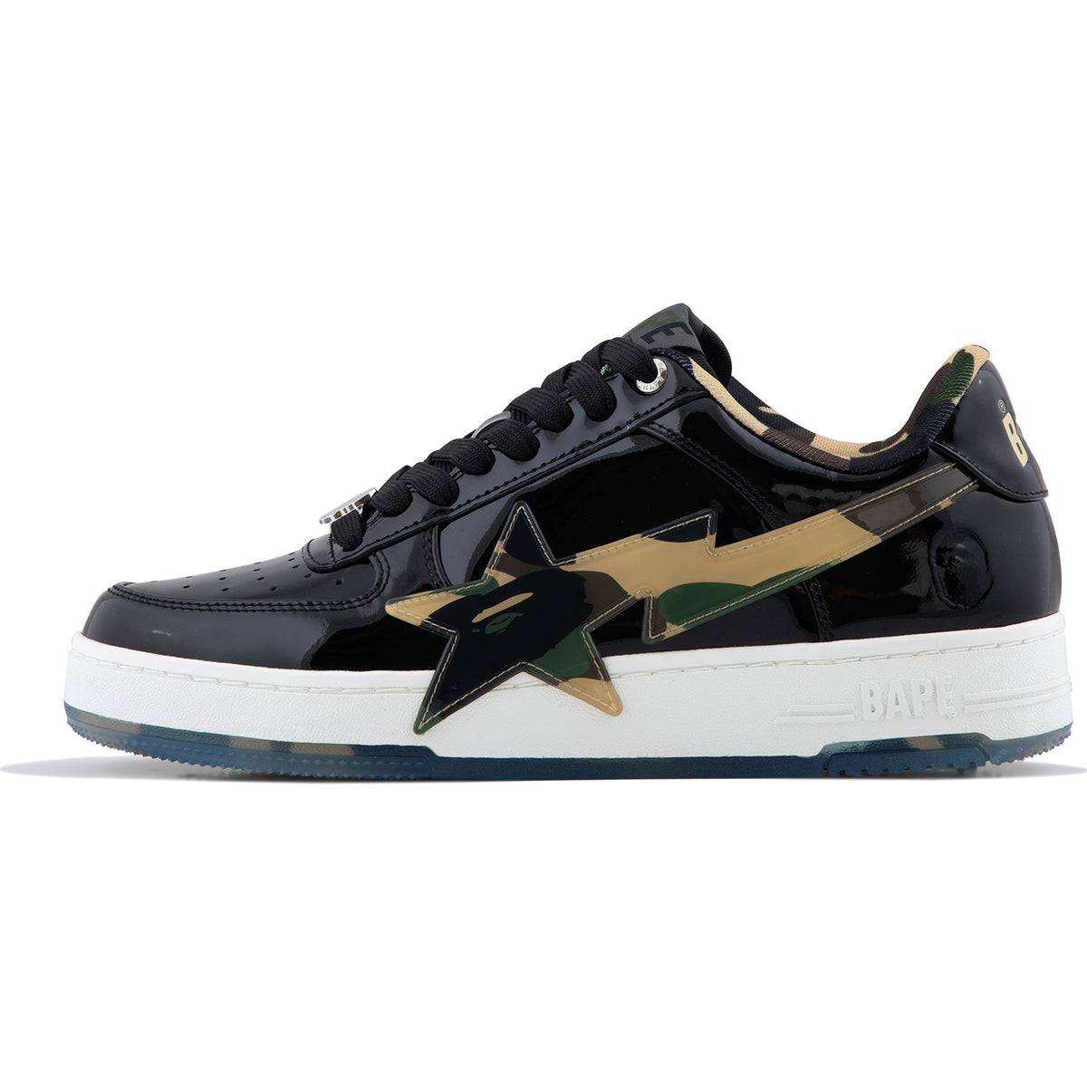 • Style Update: Combines classic BAPE STA design with glossy patent leather for a bold, modern twist