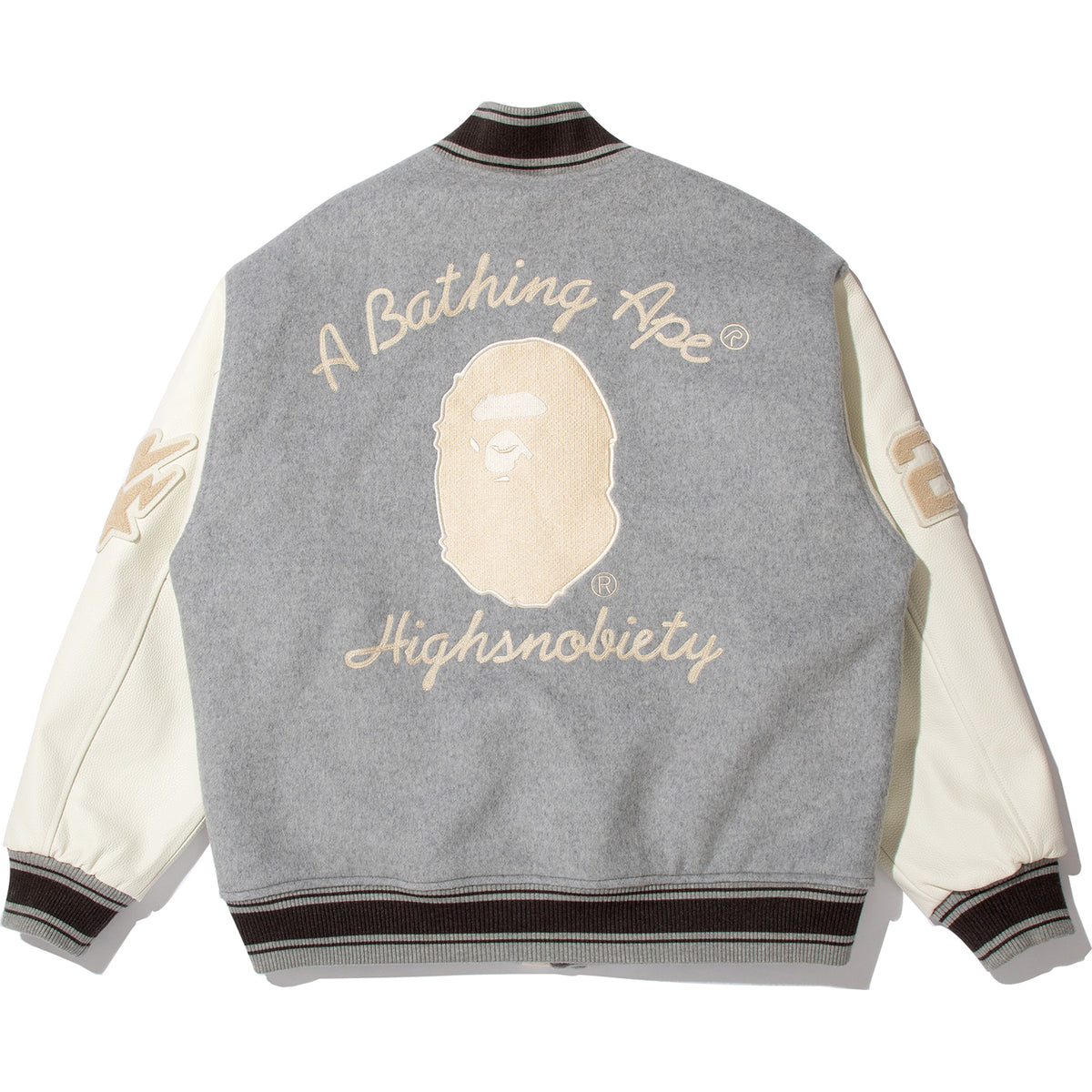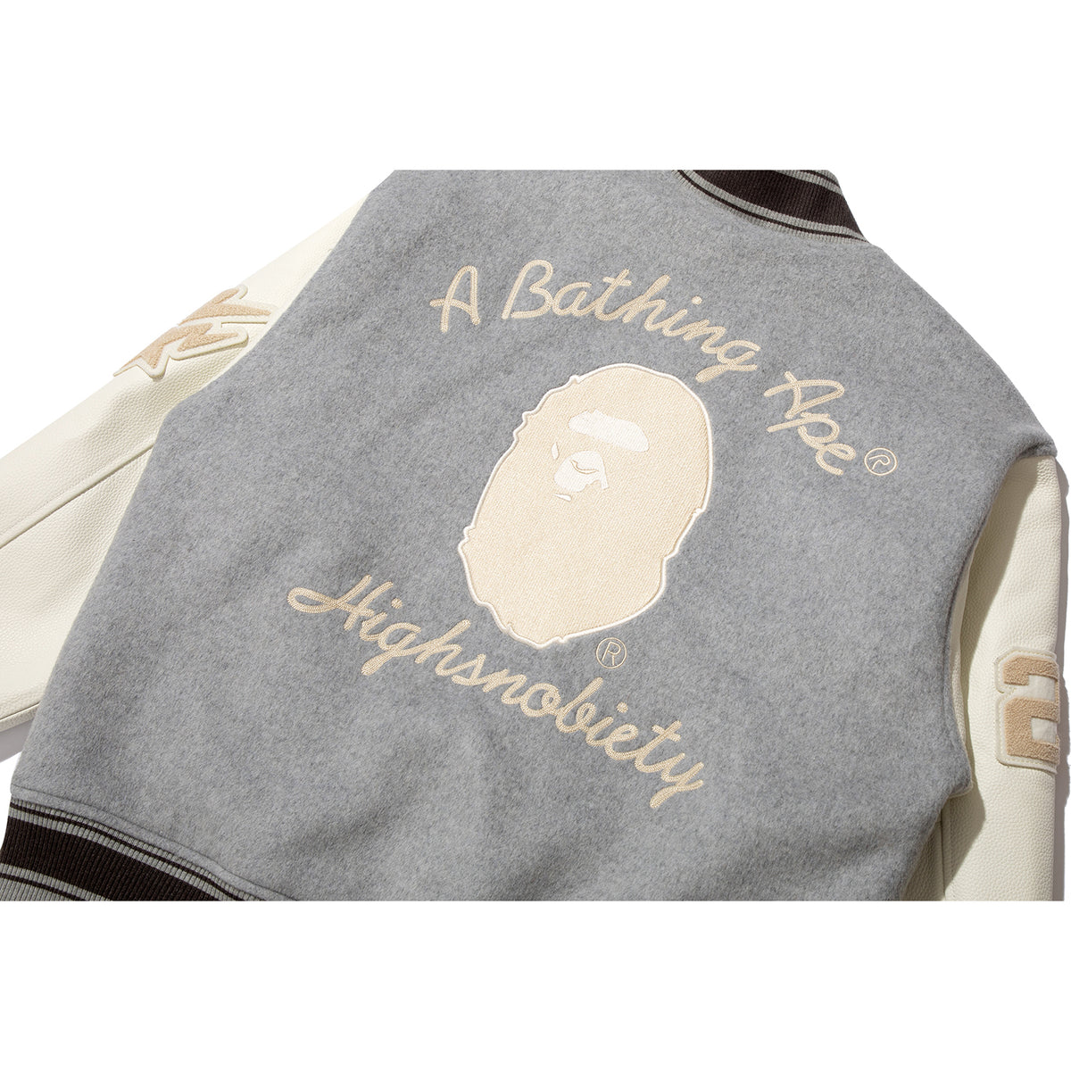 BAPE X HIGHSNOBIETY MULTI LOGO VARSITY JACKET MENS