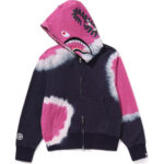 The Hand Dye Shark Full Zip Hoodie Ladies showcases BAPE’s signature streetwear creativity with a unique hand-dyed finish. Each piece features one-of-a-kind color patterns, ensuring no two hoodies are exactly alike. Highlighted by the iconic Shark face design on the hood, it captures bold urban energy with an artistic twist. Crafted from premium cotton fleece, this hoodie provides warmth, softness, and long-lasting comfort. The full zip closure and tailored ladies’ fit offer versatility and a flattering silhouette. Perfect for layering or statement wear, it’s a standout piece that blends individuality with classic BAPE style.