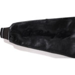 The LINE CAMO MULTI LOGO WOOL VARSITY JACKET MENS combines classic varsity style with BAPE’s signature streetwear flair. Crafted from premium wool with contrasting leather sleeves, it features the bold Line Camo pattern and multiple embroidered BAPE logos across the front and back. The ribbed collar, cuffs, and hem ensure a comfortable, snug fit, while the snap-button closure and quilted lining provide warmth and durability. This statement piece blends heritage craftsmanship with modern design, making it perfect for layering or standing out in any streetwear lineup. A true collector’s item for BAPE enthusiasts.