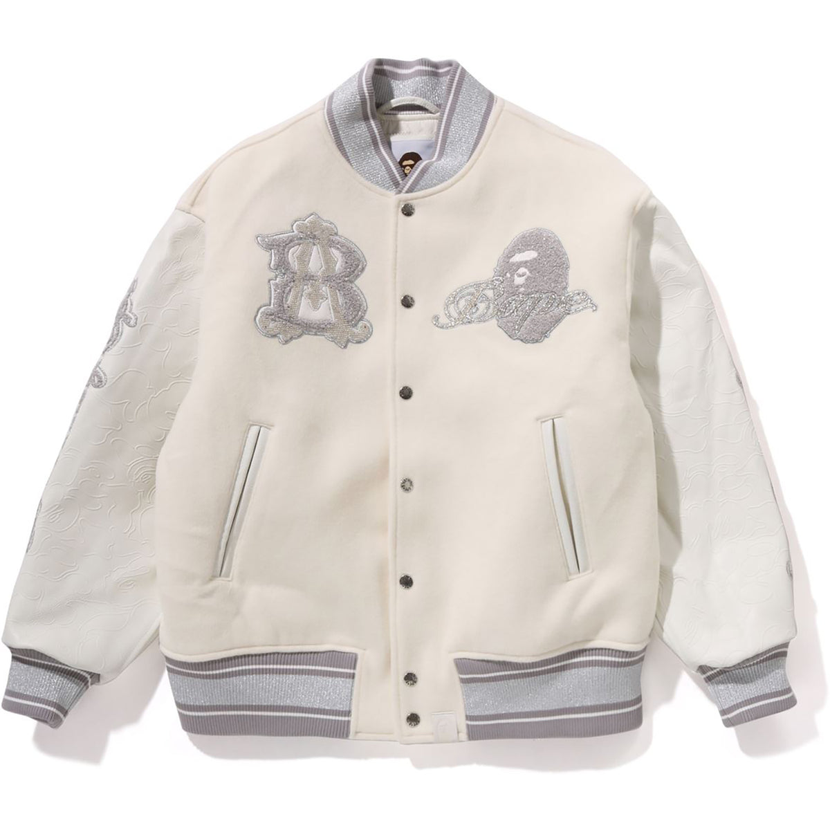BAPE X HIGHSNOBIETY MULTI LOGO VARSITY JACKET MENS